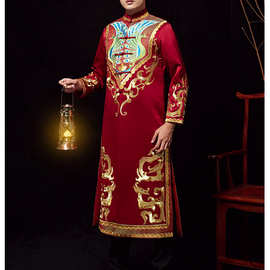 嫁艺美精工刺绣景泰龙纹男式中式结婚礼服马褂唐装 婚纱礼服 婚礼纪